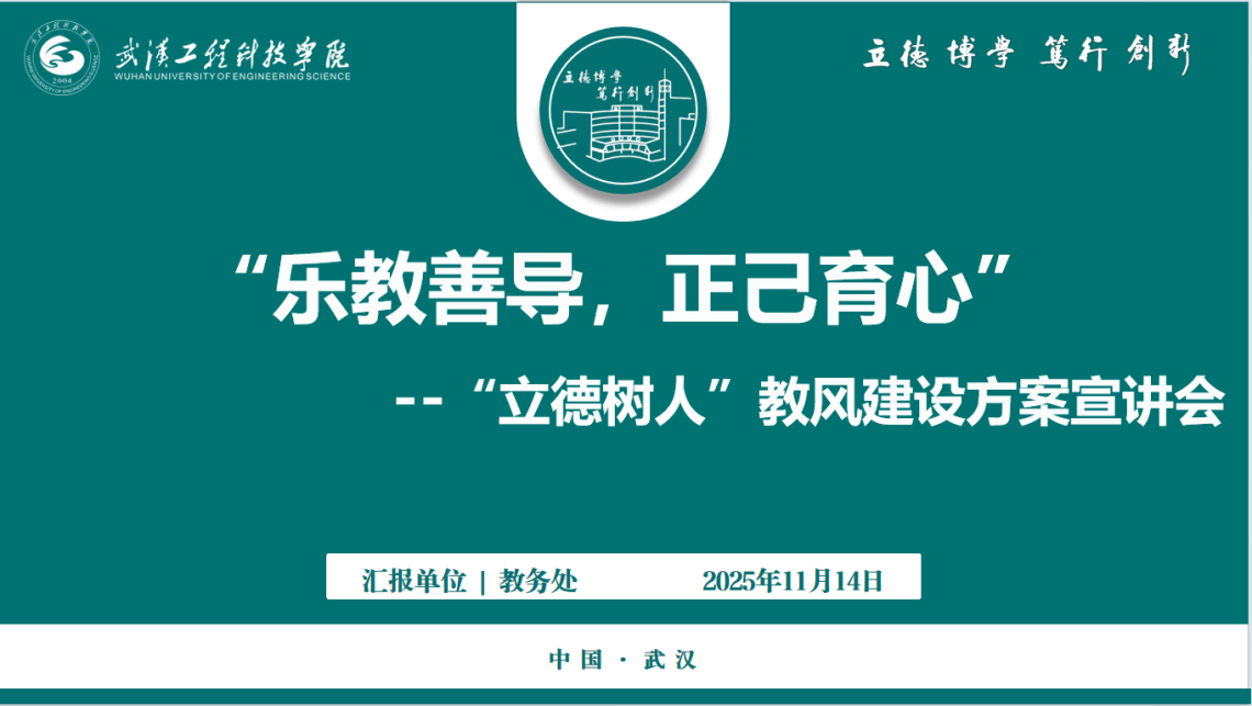 为深入贯彻落实新时代党的教育方针和学校“一训四风”文化建设要求,全面强化立德树人根本任务,11月14日,学校召开教风建设专项活动启动会,学校党委常委、校长助理胡晶晶详细解读了《武汉工程科技学院关于“立德树人”教风建设的活动方案》,围绕 “乐教善导,正己育心” 的活动主题,从“查、督、训、评”四个方面对此次教风建设活动进行了详细布置。胡晶晶强调,教风建设是学校人才培养质量的重要保障,全体教师必须深刻领会“爱生、乐教、严谨、求真”教风的内涵要义,恪守师德规范、严谨治学执教、规范教学行为、全面提升教学能力,进一步推动人才培养质量再上新台阶。